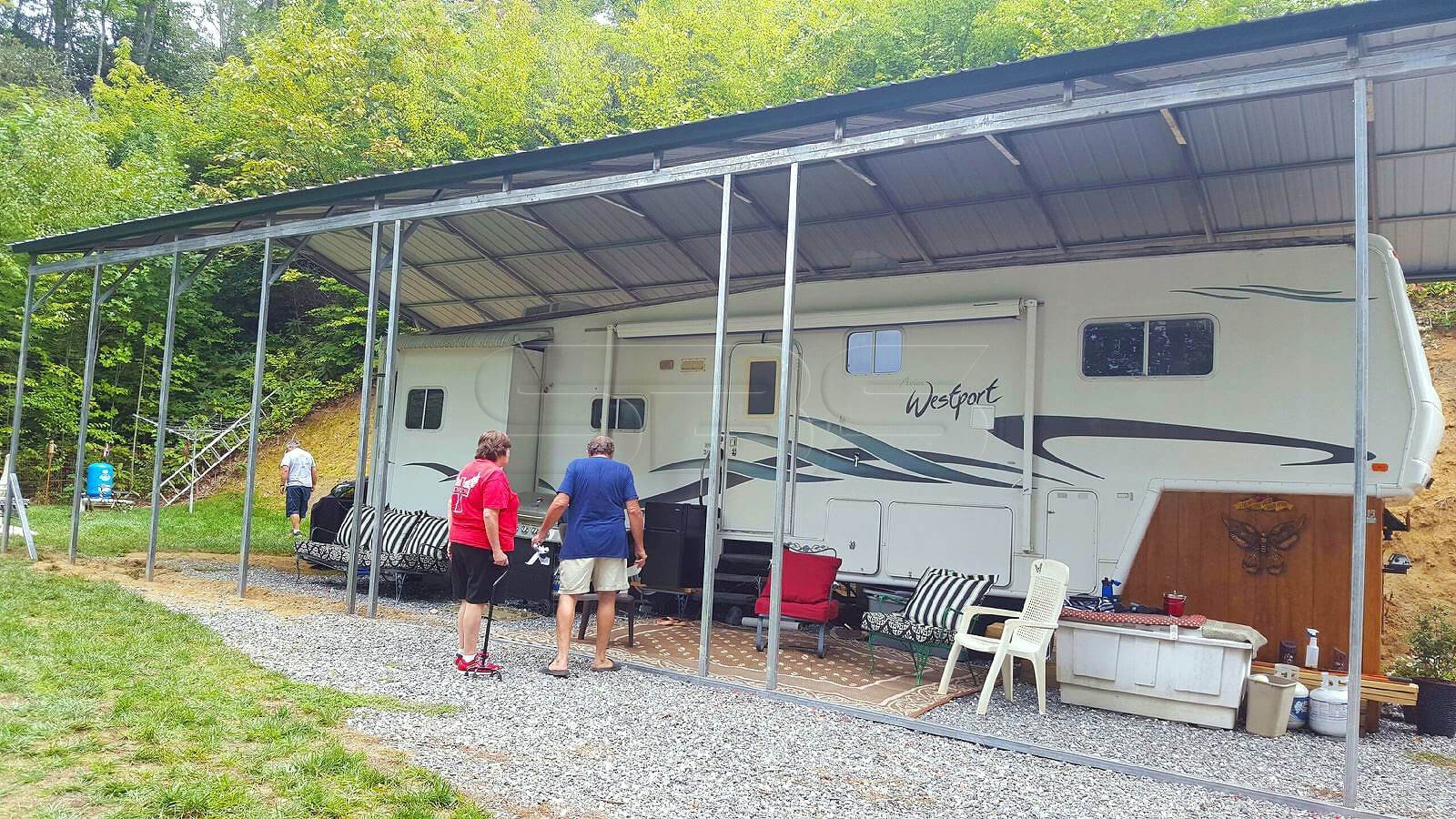 42x21 Boxed Eave Style center enclosed with 2 12x21 Lean To's Right side enclosed