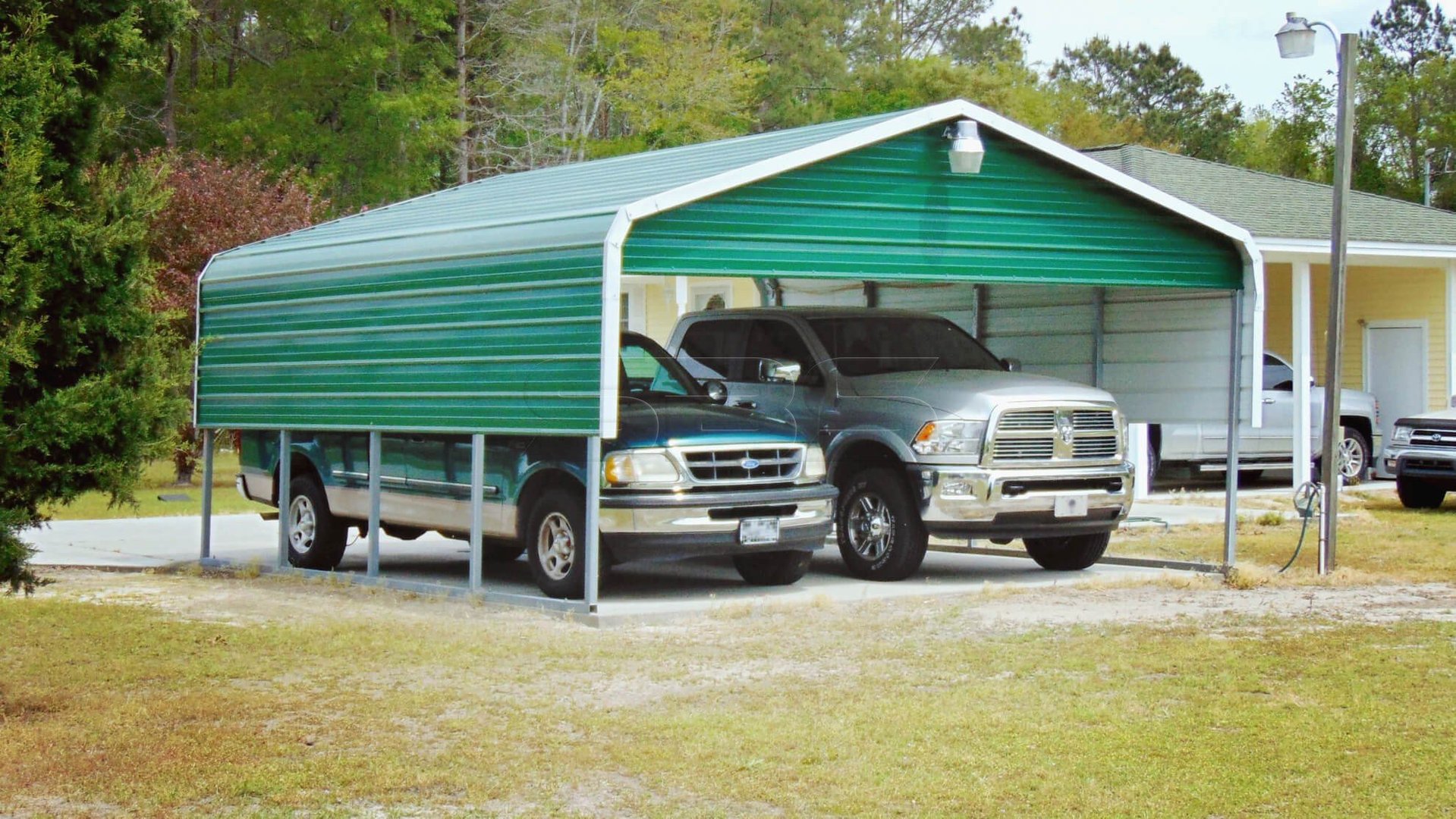 Constructed from robust metal materials, this carport is built to endure the test of time. The metal composition ensures resistance to rust, corrosion, and other environmental factors, resulting in minimal maintenance requirements and dependable protection for your vehicles.